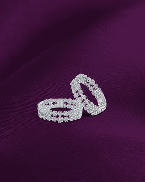 مصنوع بعناية من الفضة الاسترلينية 925 لضمان المتانة واللمعان طويل الأمد. شريط داخلي ناعم يوفر راحة طوال اليوم، بينما تسمح تفاصيل الفليغري بمرور الضوء لتعزيز بريق الأحجار وإضافة لمسة من الرقي.