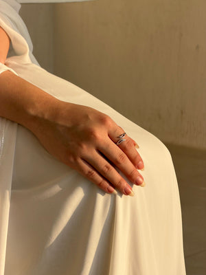 خاتم مصنوع من فضة عيار 925، يتميّز بتصميم أنيق مستوحى من نعومة أوراق الطبيعة وانسيابها. تفاصيله الدقيقة ولمسته المتلألئة تضيف إحساسًا بالهدوء والأناقة، ليكون قطعة راقية تناسب الإطلالات اليومية والمناسبات الخاصة.