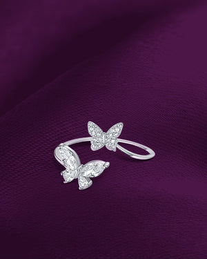 خاتم فضة بتصميم فراشات أنيق