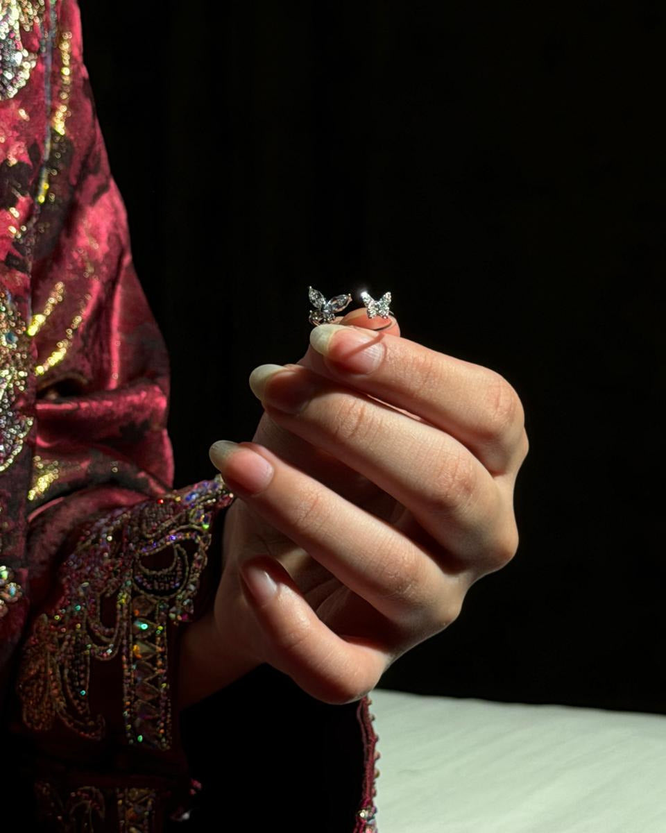 مستوحى من جمال الفراشات ورمزيتها، يجمع هذا الخاتم بين الأناقة العصرية والنعومة والجاذبية. يمنحه التصميم المفتوح طابعًا حديثًا، بينما تضيف تفاصيل الفراشات لمسة فريدة وراقية. يمكن ارتداؤه منفردًا لإطلالة ناعمة أو تنسيقه مع خواتم فضية أخرى لإطلالة متدرجة وأنيقة.