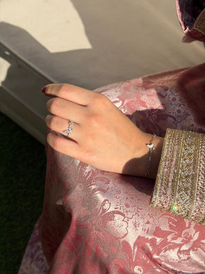 The Dainty Butterfly Charm Bracelet features tiny butterfly charms along a fine chain, creating a feminine and whimsical look. Perfect for everyday wear, special occasions, or as a thoughtful gift. Pair it with other bracelets from our Bracelets Collection for a stylish stacked look.